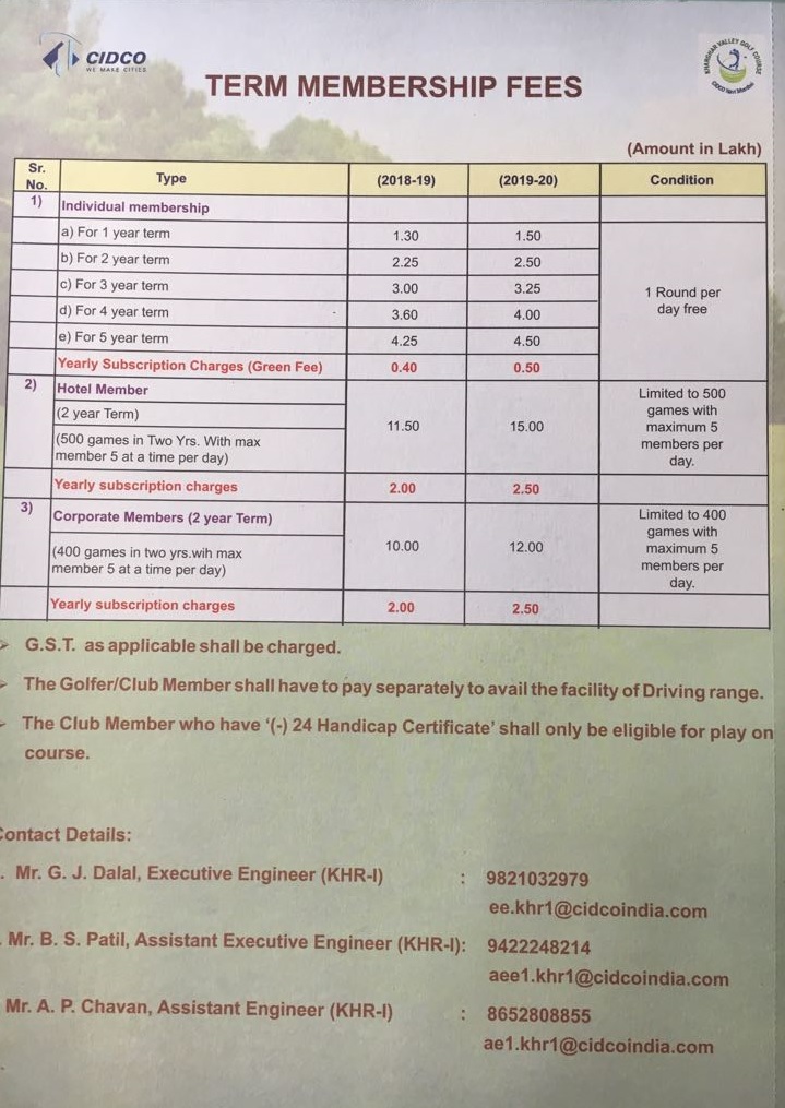 गोल्फ कोर्स चे सदस्यत्व शुल्क